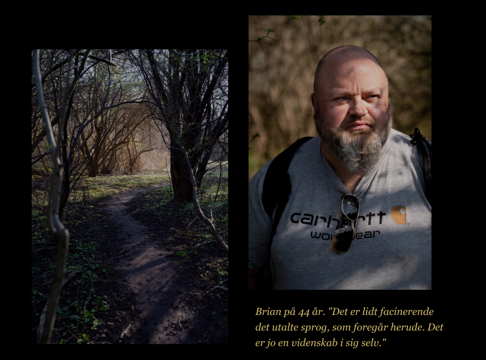 "Jeg fornemmer tydeligt, at når man går ind i busken, betyder det pludselig ikke noget, hvilket hverv du har. Så betyder det mere, hvorvidt der er kemi, og om du faktisk tænder på den, du ser," fortæller Brian i skyggen fra forårets første solstråler. En af hans venner kommer cyklende forbi parkeringspladsen og fanger hans opmærksomhed.